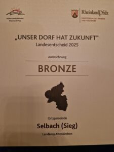 2024/2025 - Teilnahme am Bundeswettbewerb "Unser Dorf hat Zukunft". Ergebnis: Kreissieger, Drittplatzierter im Gebiet Koblenz und Bronze im Landesentscheid Rheinland-Pfalz