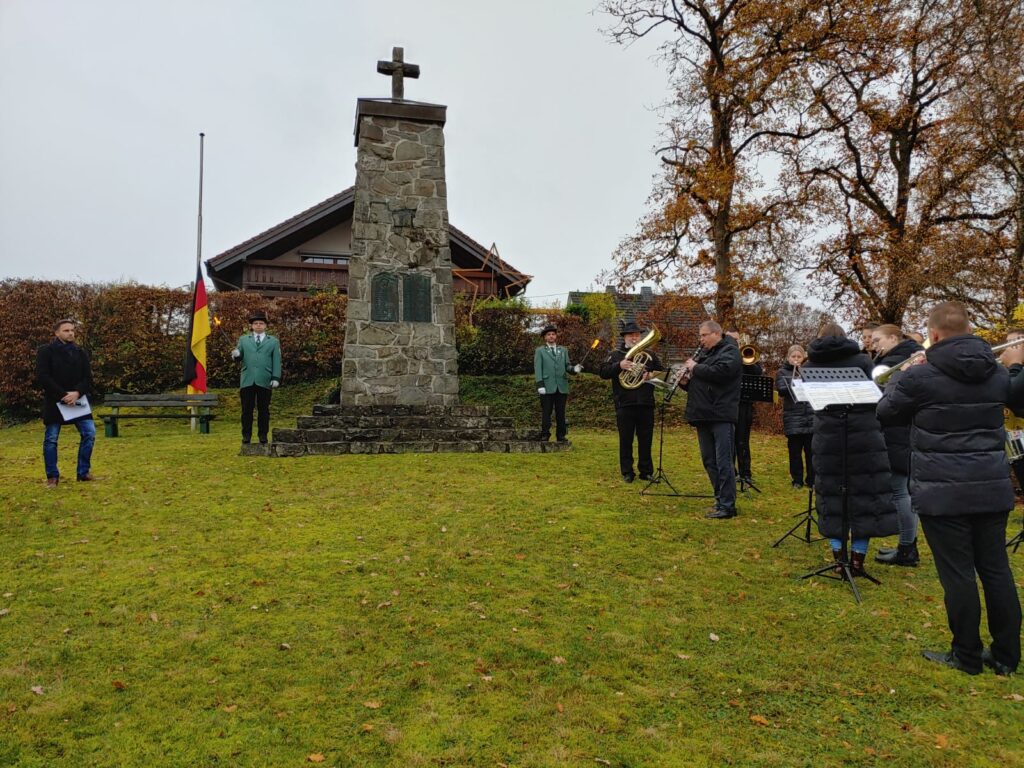 Alljährlich, und das seit fast hundert Jahren, begehen die Selbacher den Volkstrauertag mit einer Gedenkveranstaltung am Kriegerdenkmal in der Ortsmitte. Neben dem traditionellen Verlesen des Totengedenkens, der Kranzniederlegung für die Toten und Vermissten Selbacher der beiden Weltkriege und mehreren Musikstücken, intoniert von Blechbläsern des Musikvereins Brunken, verlasen Ortsbürgermeister Matthias Grohs und Beigeordnete Nina Hüsch eine Interpretation des Gemäldes „Das Gesicht des Friedens“ von Sieger Köder. Lesen Sie hier ihre Wortbeiträge, die wie jedes Jahr einen Bezug auf Selbach einschließen.
