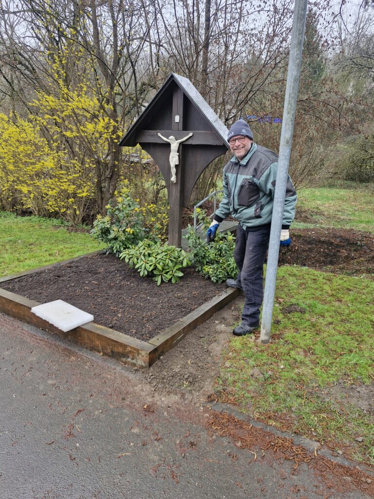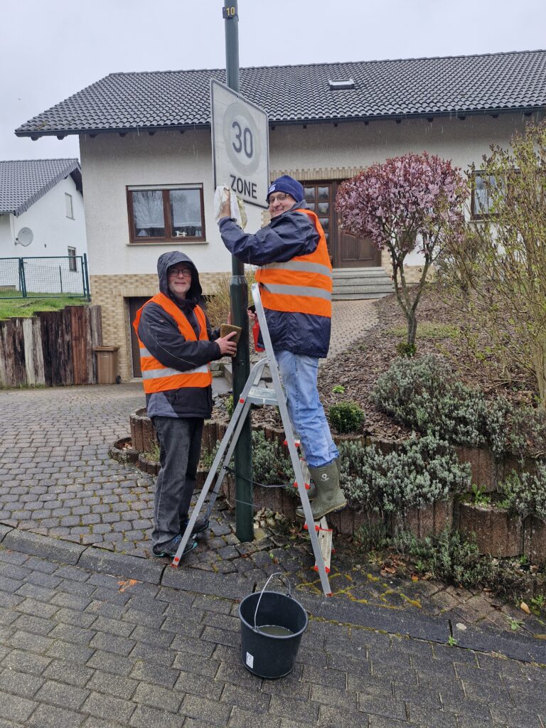 Trotz der widrigen Wetterbedingungen war die Stimmung unter den Helfern hervorragend. In verschiedenen Trupps wurden im gesamten Ortsgebiet Müll gesammelt, Straßenschilder von Winterschmutz befreit, Beete bepflanzt und in die Jahre gekommene Sitzbänke fachgerecht restauriert. Besonders erfreulich: Das Engagement zieht sich durch alle Generationen. Mit Benedikt und Felix stellten die jüngsten Teilnehmer unter Beweis, dass ihnen die Zukunft ihres Dorfes am Herzen liegt.